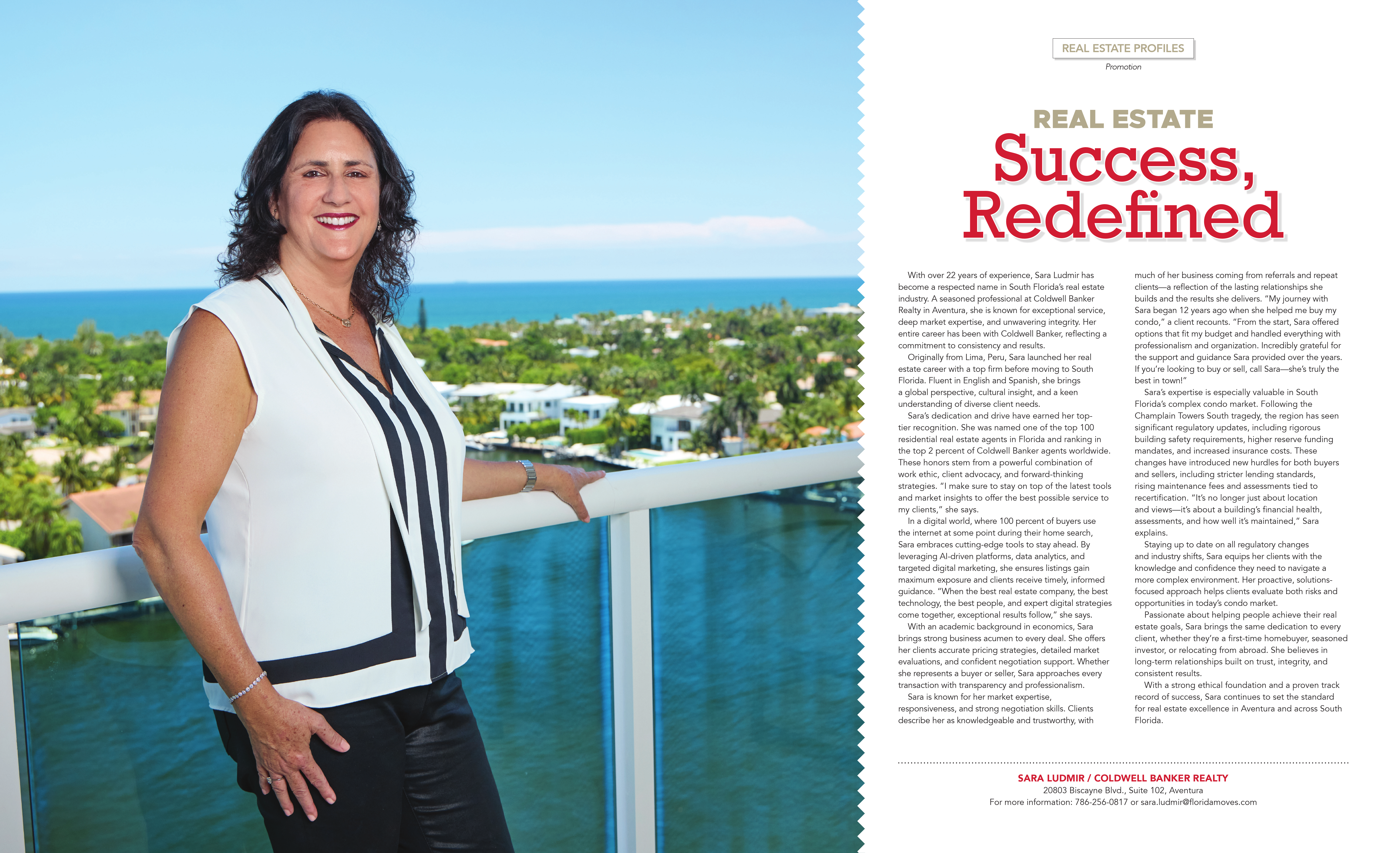 Sara has established herself as a highly respected and leading professional in the region. She has consistently received accolades throughout her real estate career, securing a position as one of the leading agents at the Aventura office, placing among the top 25 agents in Southeast Florida, and acknowledged as one of the top 100 residential real estate agents in Florida. In addition, she ranks within the top 2 percent of Coldwell Banker agents globally.