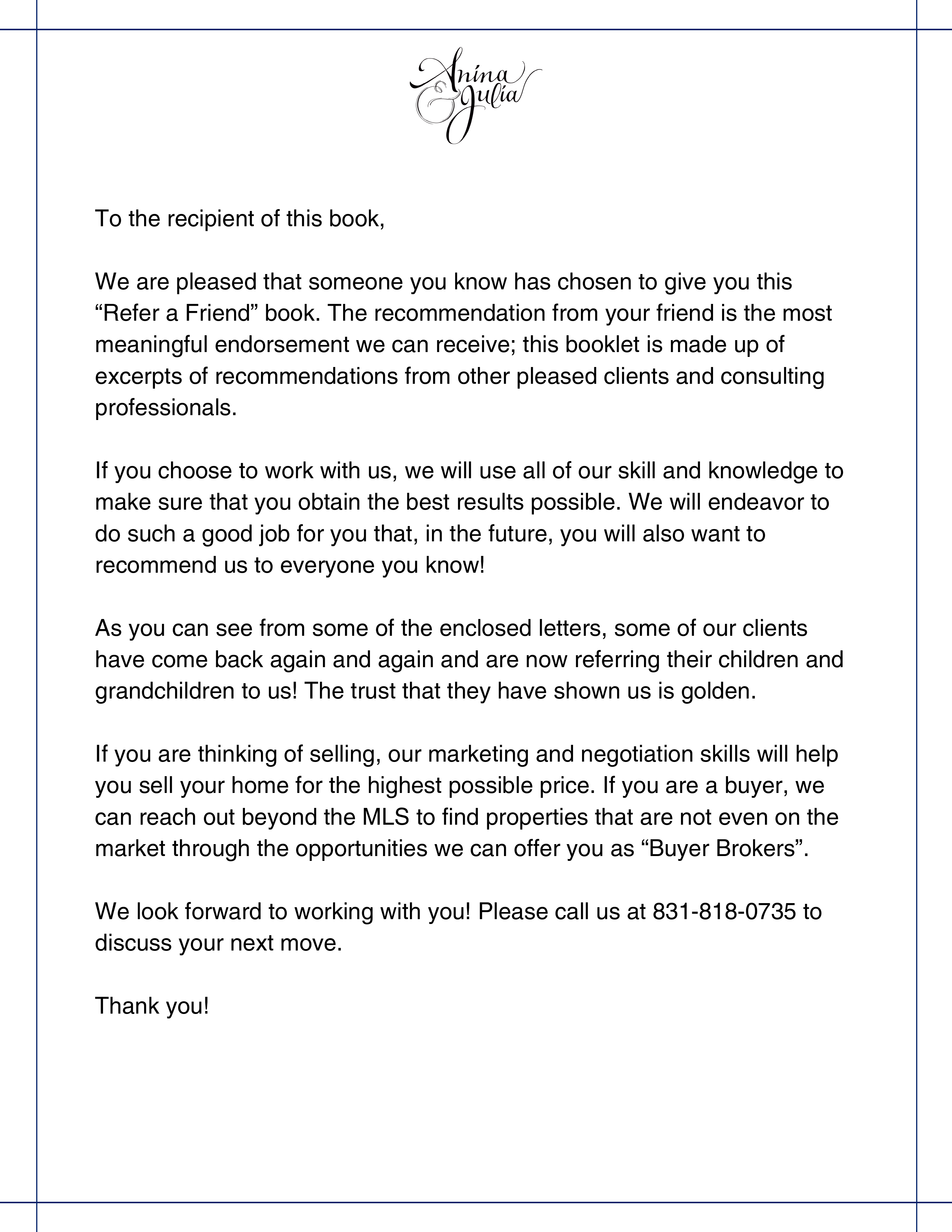 2. Refer A Friend Cover Page